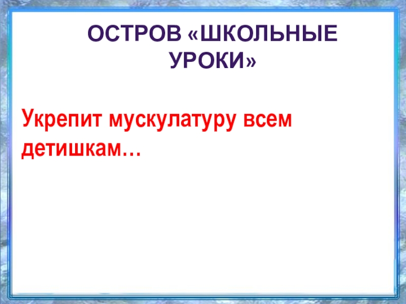 Остров «ШКОЛЬНЫЕ УРОКИ»Укрепит мускулатуру всем детишкам…