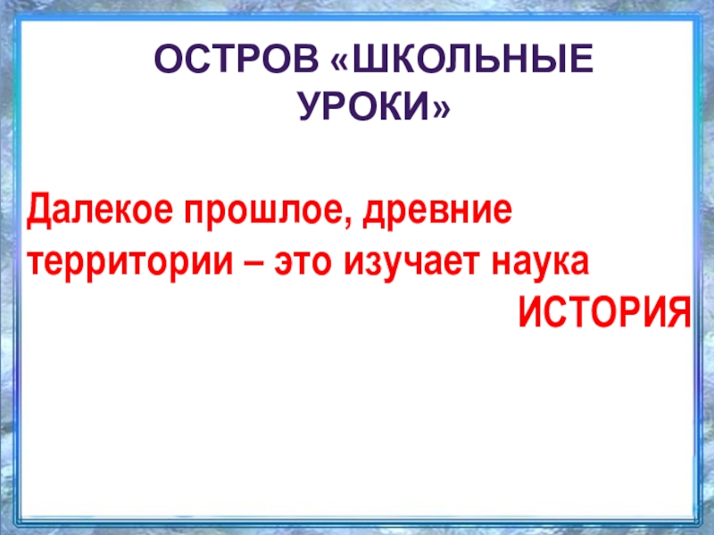 Остров «ШКОЛЬНЫЕ УРОКИ»Далекое прошлое, древние территории – это изучает наукаИСТОРИЯ