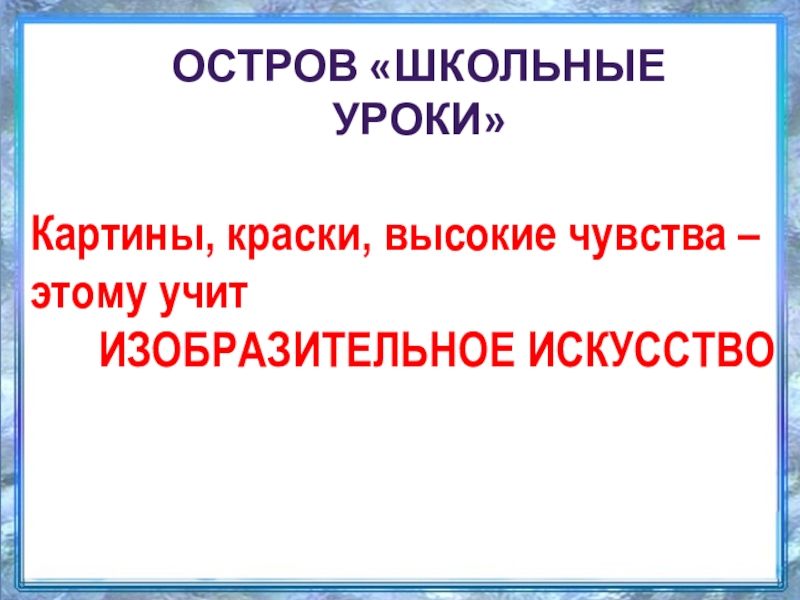 Остров «ШКОЛЬНЫЕ УРОКИ»Картины, краски, высокие чувства – этому учит ИЗОБРАЗИТЕЛЬНОЕ ИСКУССТВО