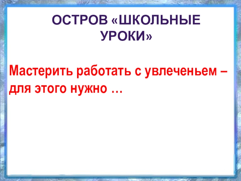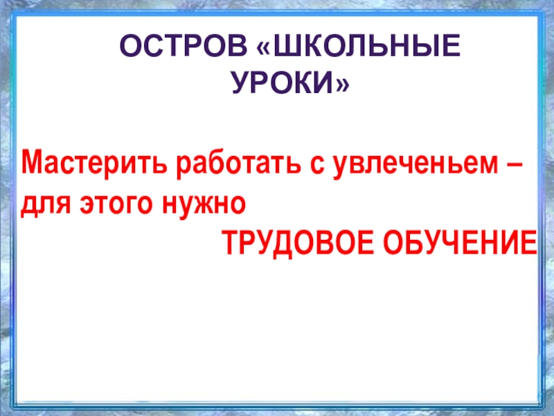 Остров «ШКОЛЬНЫЕ УРОКИ»Мастерить работать с увлеченьем – для этого нужно …