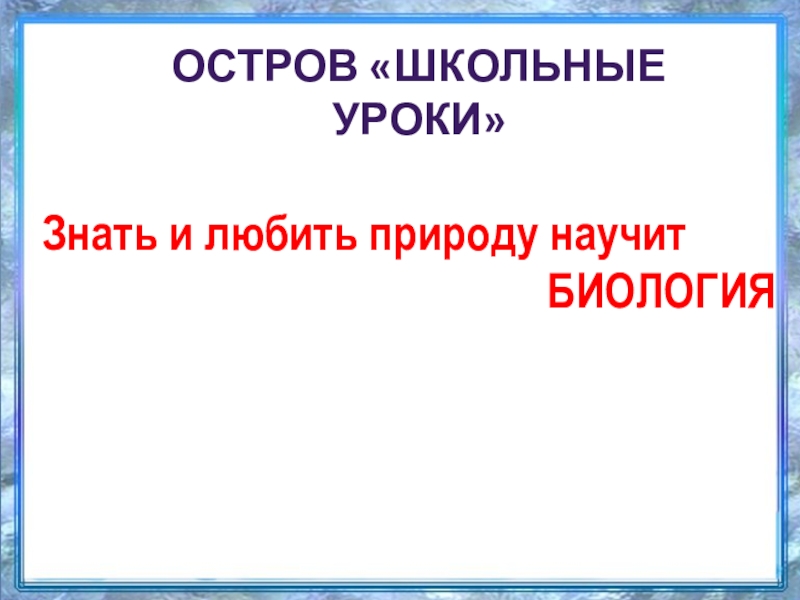 Остров «ШКОЛЬНЫЕ УРОКИ»Знать и любить природу научитБИОЛОГИЯ