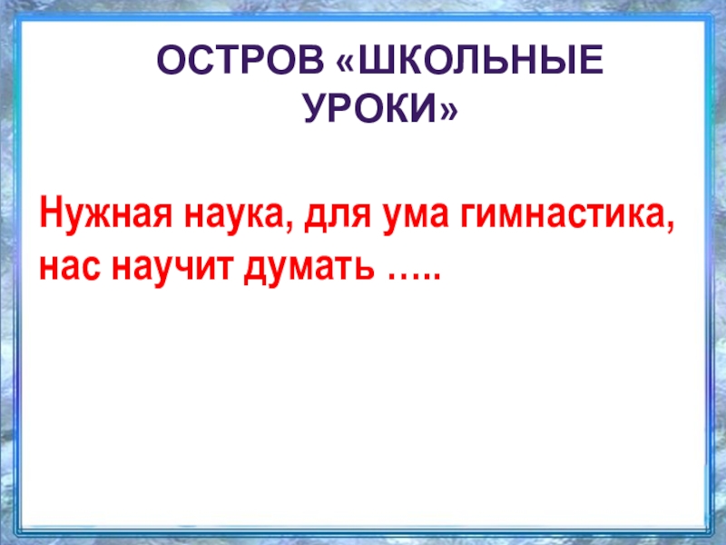 Остров «ШКОЛЬНЫЕ УРОКИ»Нужная наука, для ума гимнастика, нас научит думать …..