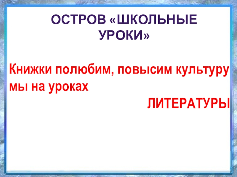 Остров «ШКОЛЬНЫЕ УРОКИ»Книжки полюбим, повысим культуру мы на урокахЛИТЕРАТУРЫ