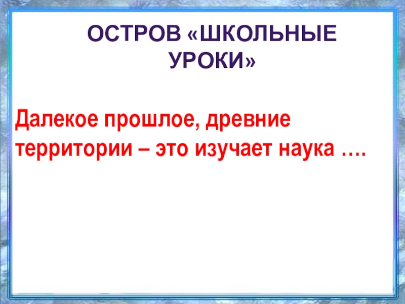 Остров «ШКОЛЬНЫЕ УРОКИ»Далекое прошлое, древние территории – это изучает наука ….