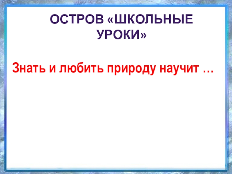 Остров «ШКОЛЬНЫЕ УРОКИ»Знать и любить природу научит …