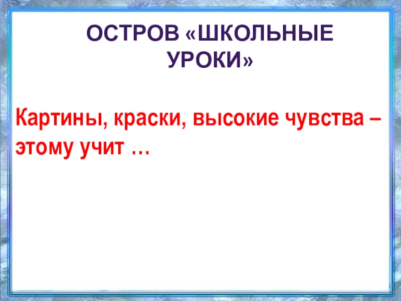 Остров «ШКОЛЬНЫЕ УРОКИ»Картины, краски, высокие чувства – этому учит …
