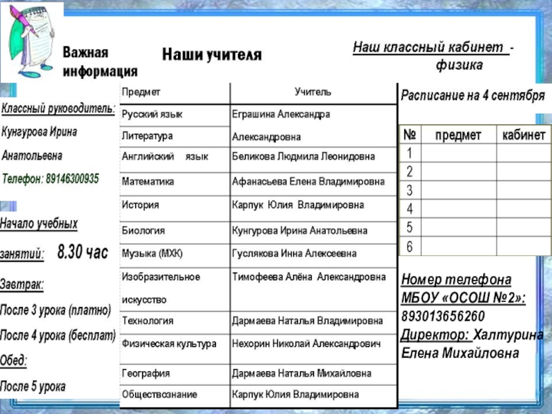 Номер телефона МБОУ «ОСОШ №2»:893013656260Директор: Халтурина Елена Михайловна