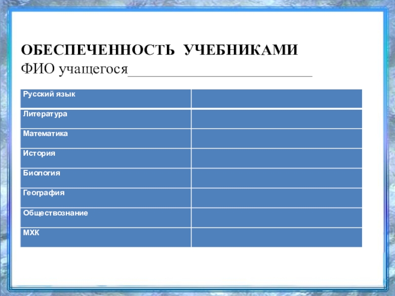 ОБЕСПЕЧЕННОСТЬ УЧЕБНИКАМИФИО учащегося________________________