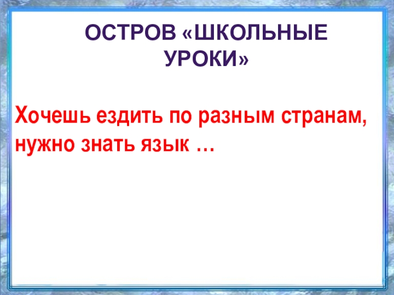 Остров «ШКОЛЬНЫЕ УРОКИ»Хочешь ездить по разным странам, нужно знать язык …