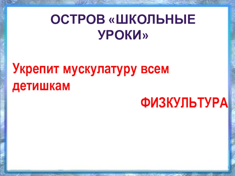 Остров «ШКОЛЬНЫЕ УРОКИ»Укрепит мускулатуру всем детишкамФИЗКУЛЬТУРА