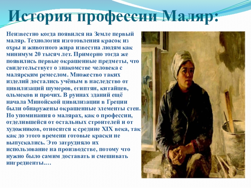 Маляр вдыхает жизнь в серые постройки и предметы, придаёт им эстетический вид. Представьте себе, что здания будут просто поштукатурены, деревянные поручни и парты останутся в коричневых и чёрных пятнах от грязных рук, а корабли так и будут плавать ржавыми, пока не утонут.