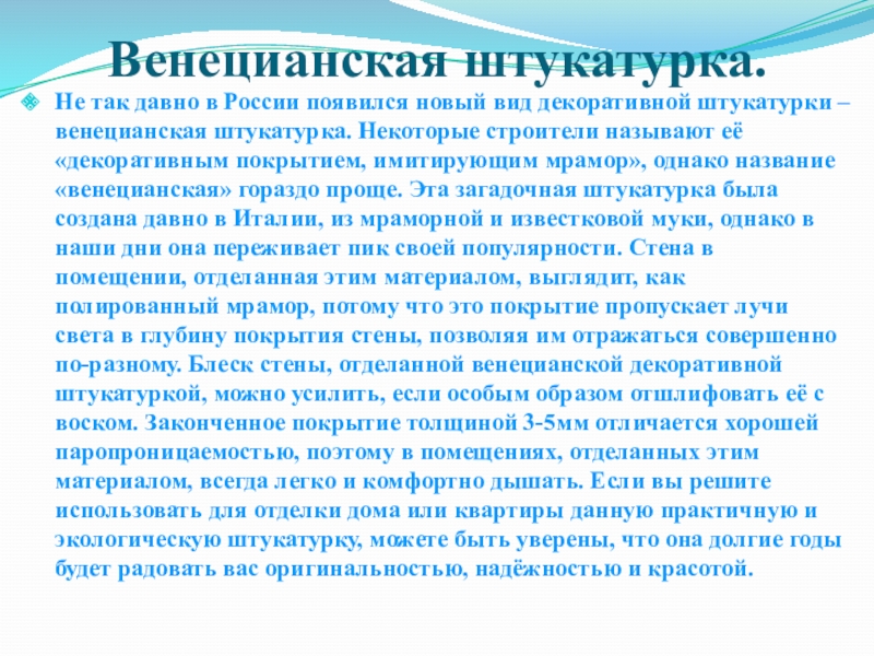 Профессия облицовщика-плиточника является очень важной и нужной в строительстве. Облицовка придает зданию красивый, законченный вид, повышает стойкость поверхностей к воздействию влаги и температуры, увеличивает долговечность зданий, улучшает санитарно- гигиенические условия в помещениях.