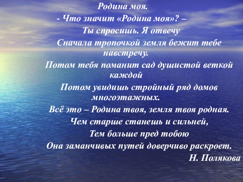 Первый соответствует светлому, ясному будущему. Голубое небо едино для всех народов мира. Его цвет в Гербе олицетворяет стремление Казахстана к миру, согласию, дружбе и единству со всеми народами планеты.