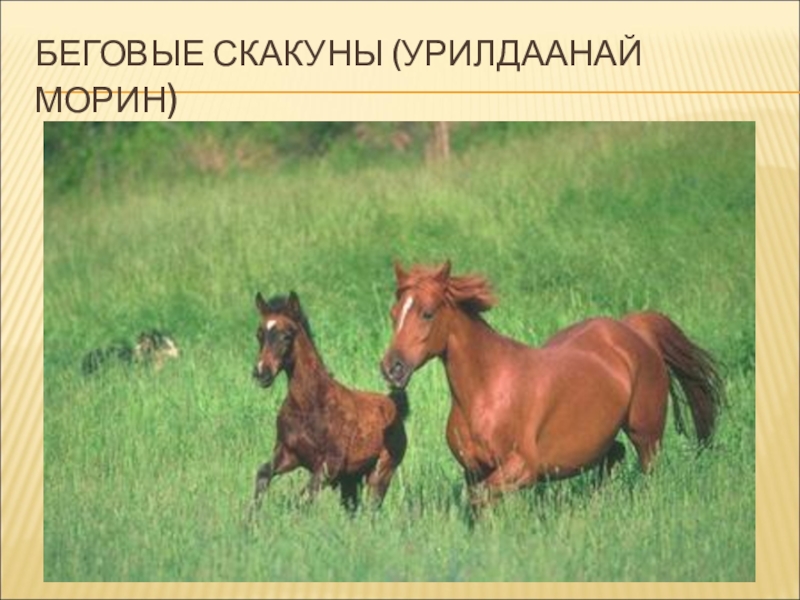Слайд 11Беговые скакуны (урилдаанай морин)