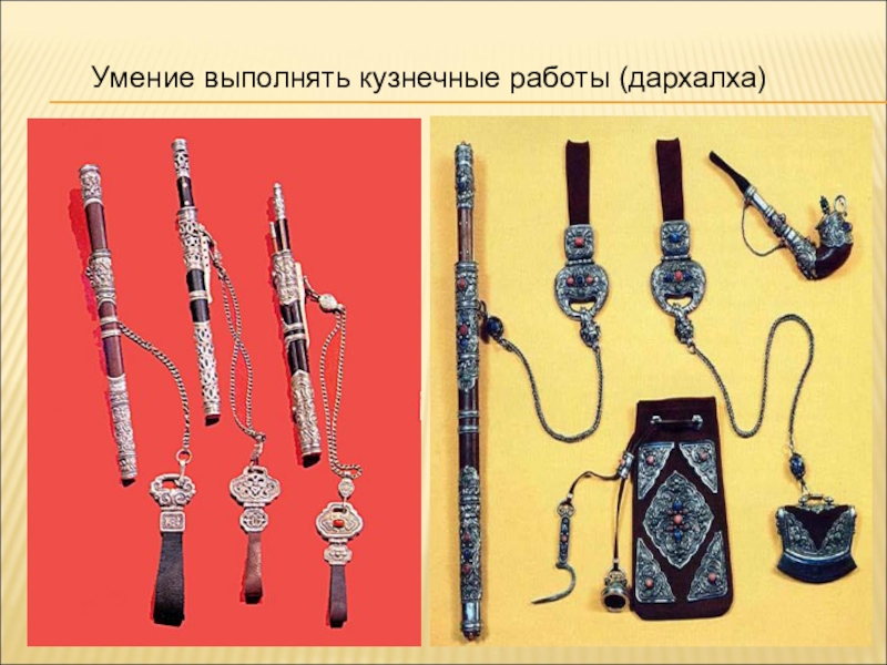Слайд 19Умение выполнять кузнечные работы (дархалха)