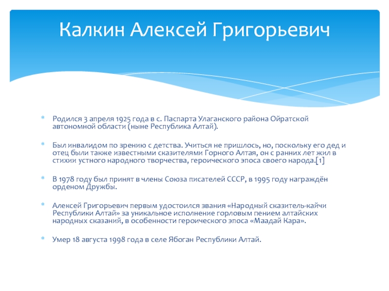 Однажды А.Г.Калкин сказал такие слова, к которым должен прислушаться каждый из нас: