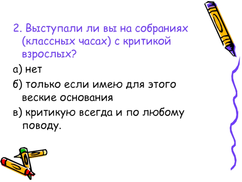 Слайд 42. Выступали ли вы на собраниях(классных часах) с критикой взрослых?