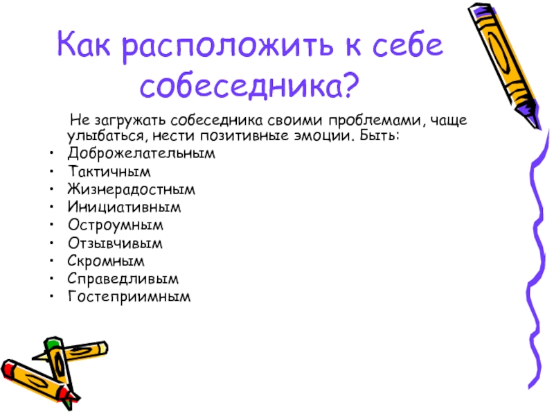 Старайтесь не отзываться о людях дурно, ни в чем не обвиняйте собеседника.