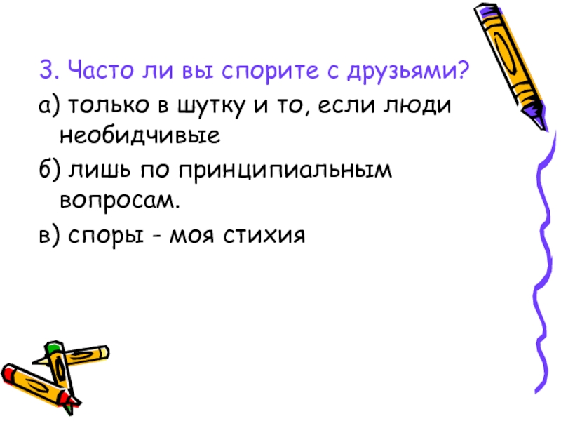 12-20 очков. Вы слывете человеком конфликтным. Но это преувеличение. Вы конфликтуете, только если нет иного выхода, когда все другие средства исчерпаны. Вы способны твердо отстаивать свое мнение, не думая, как это отразиться на отношениях к вам товарищей. При этом вы не «выходите за рамки», не унижаетесь до оскорблений. Все это вызывает к вам уважение.