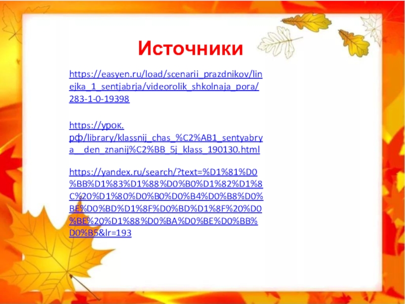 Источникиhttps://easyen.ru/load/scenarii_prazdnikov/linejka_1_sentjabrja/videorolik_shkolnaja_pora/283-1-0-19398  https://урок.рф/library/klassnij_chas_%C2%AB1_sentyabrya__den_znanij%C2%BB_5j_klass_190130.htmlhttps://yandex.ru/search/?text=%D1%81%D0%BB%D1%83%D1%88%D0%B0%D1%82%D1%8C%20%D1%80%D0%B0%D0%B4%D0%B8%D0%BE%D0%BD%D1%8F%D0%BD%D1%8F%20%D0%BE%20%D1%88%D0%BA%D0%BE%D0%BB%D0%B5&lr=193