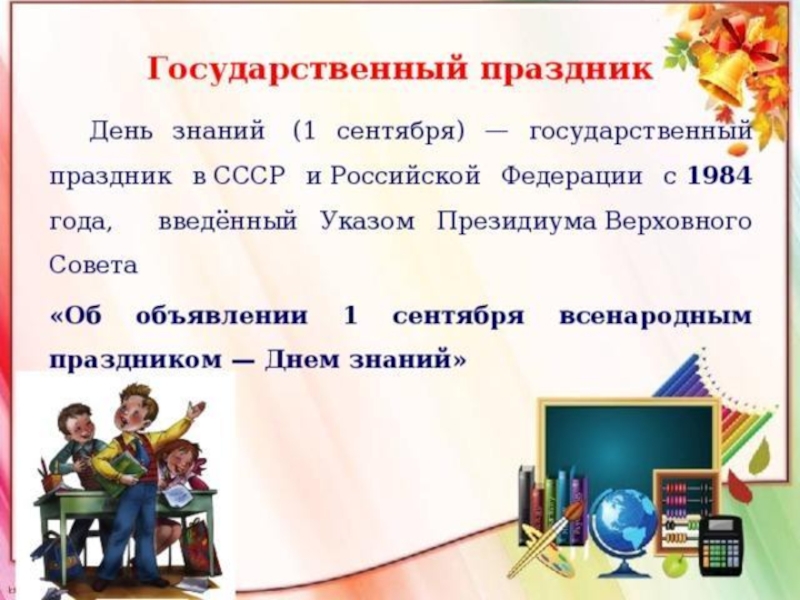 Презентация, доклад классному часу,посвящённому Дню Знаний