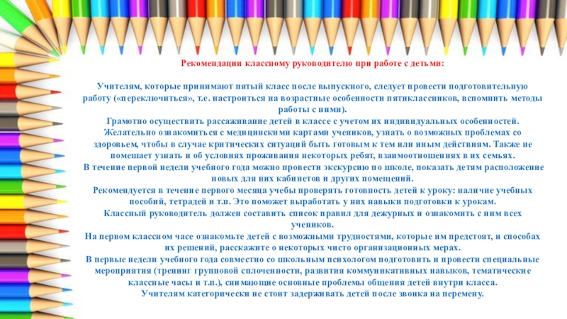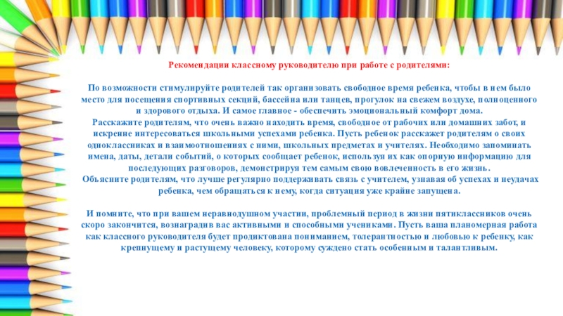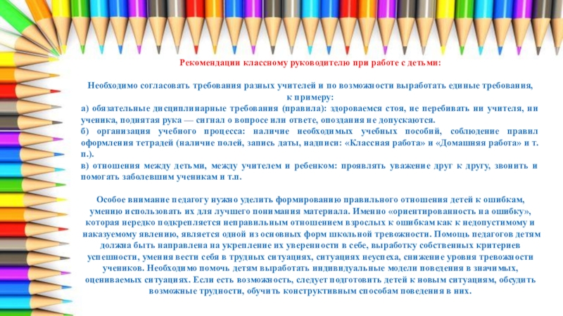 Слайд 18Рекомендации классному руководителю при работе с детьми: