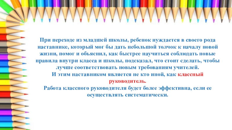 Слайд 16При переходе из младшей школы, ребенок нуждается в своего рода наставнике,