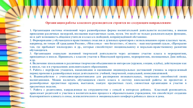 Слайд 17Организация работы классного руководителя строится по следующим направлениям: