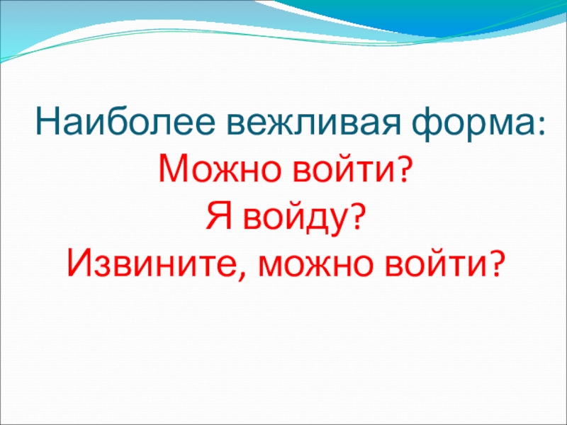 Слайд 3Наиболее вежливая форма: Можно войти? Я войду? Извините, можно войти?