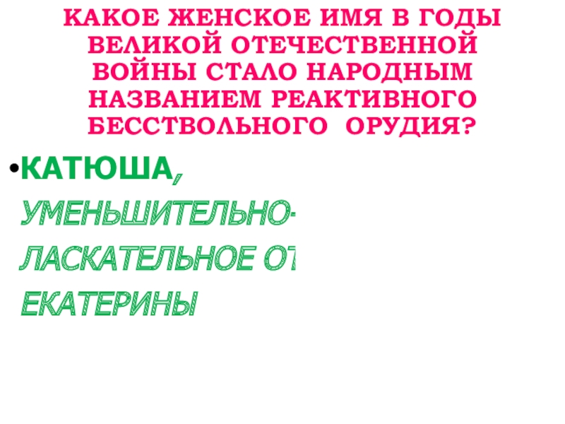 КАТЮША, УМЕНЬШИТЕЛЬНО-ЛАСКАТЕЛЬНОЕ ОТ ЕКАТЕРИНЫ