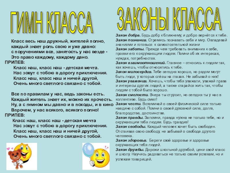 Закон дружбы. Дорожи школьной дружбой, цени свой класс и школу. Научись радоваться не только своим успехам, но и успехам товарищей.