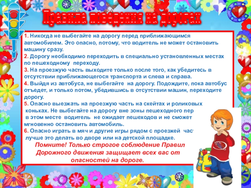 коньках. Не выбегайте на дорогу вне зоны пешеходного перехода,