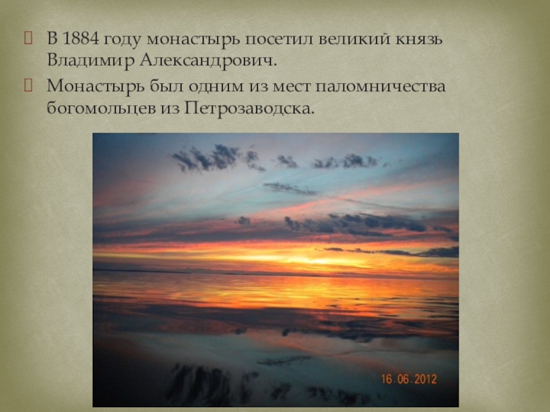Слайд 8В 1884 году монастырь посетил великий князь Владимир Александрович.