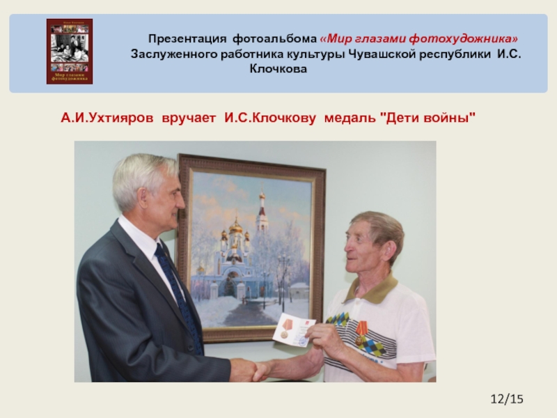 А.И.Ухтияров вручает И.С.Клочкову медаль "Дети войны"