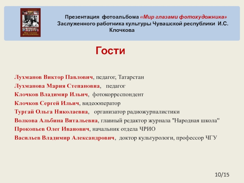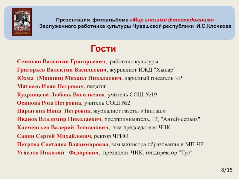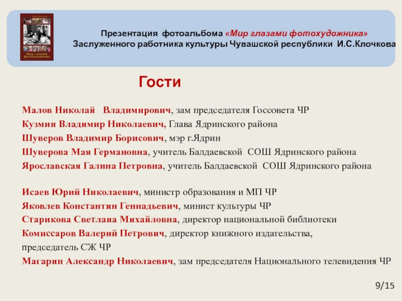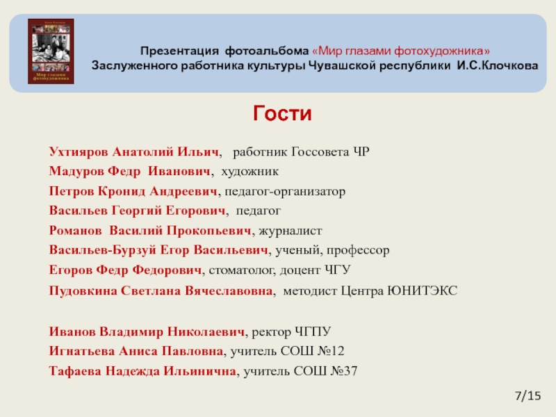 Заслуженного работника культуры Чувашской республики И.С.Клочкова