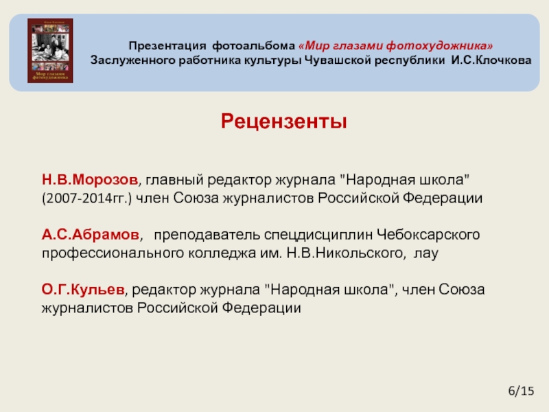 Н.В.Морозов, главный редактор журнала "Народная школа" (2007-2014гг.) член Союза журналистов Российской Федерации