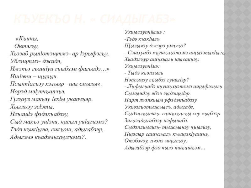 Сыдэплъыешъ- тыжьынэу чъыгъэу,