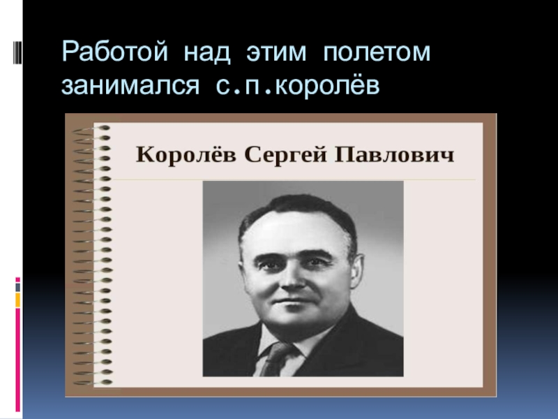 Слайд 4Работой над этим полетом занимался с.п.королёв