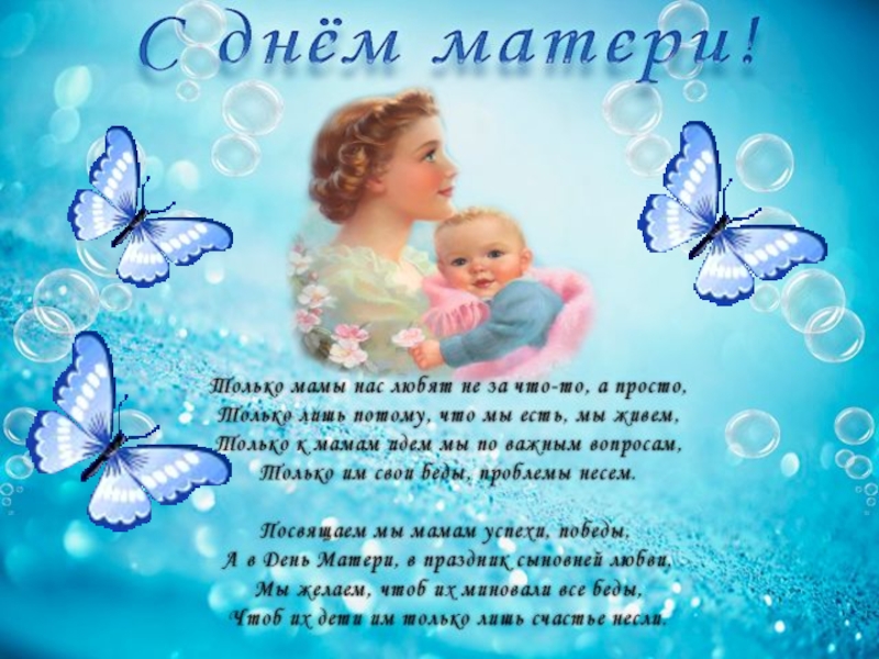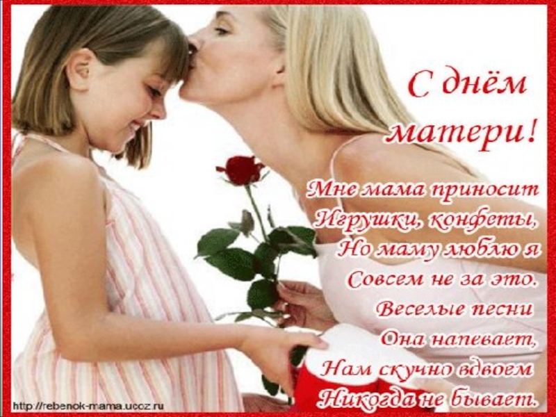 знак святой и вещий, Ярко обозначенный в веках. Самая прекрасная из женщин - Женщина с ребенком на руках! Пусть ей вечно солнце рукоплещет, Так она и будет жить в веках, Самая прекрасная из женщин- Женщина с ребенком на руках!
