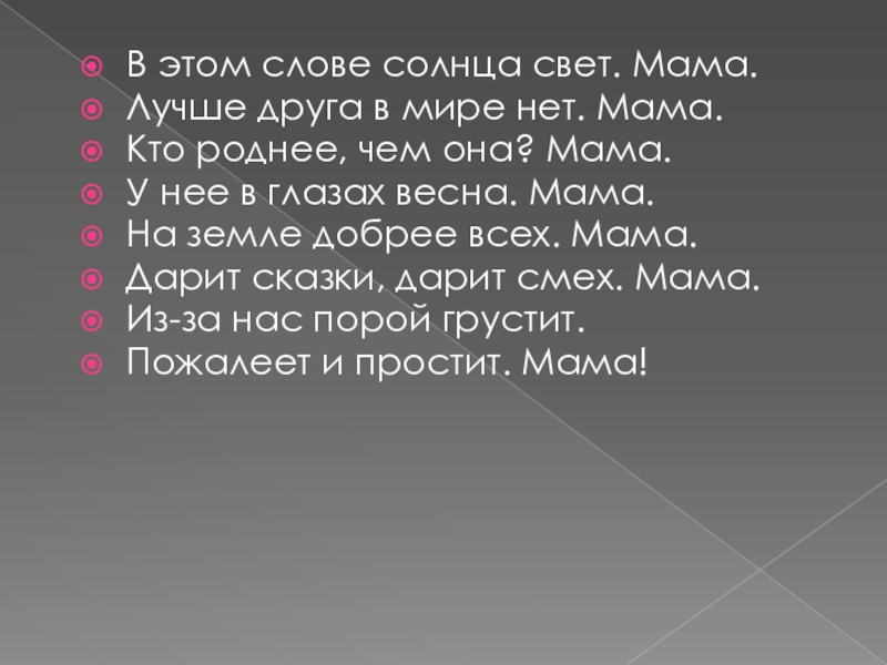 Слайд 5В этом слове солнца свет. Мама.