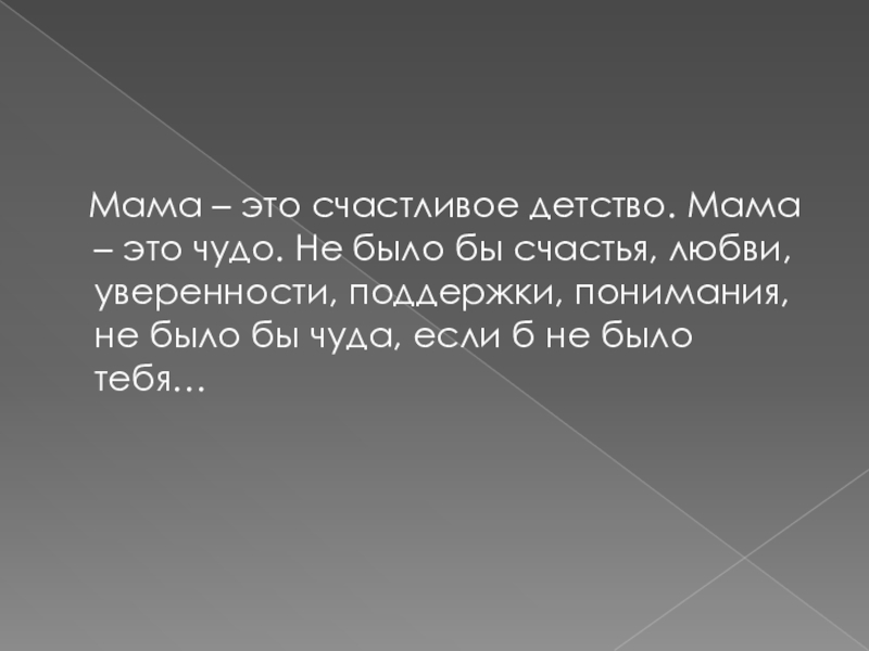 Слайд 11 Мама – это счастливое детство. Мама – это чудо.