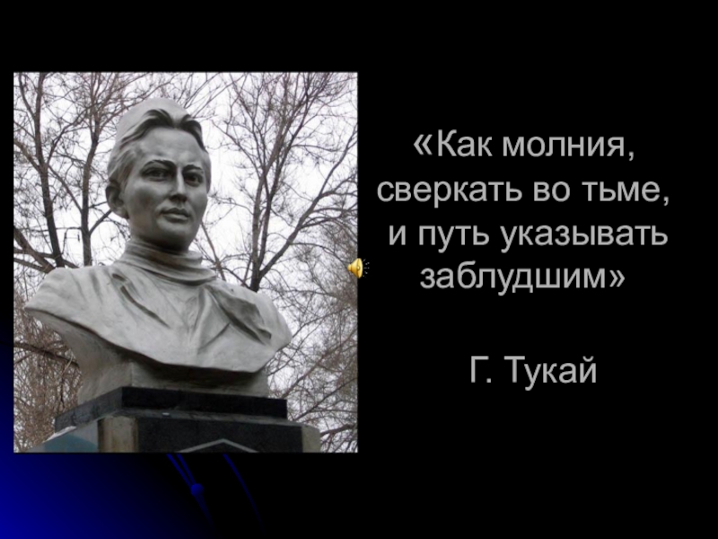 Слайд 13«Как молния, сверкать во тьме, и путь указывать заблудшим» Г. Тукай