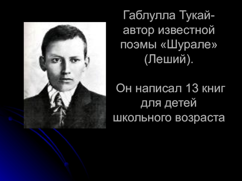 Слайд 7Габлулла Тукай-автор известной поэмы «Шурале»(Леший). Он написал 13 книг для детей