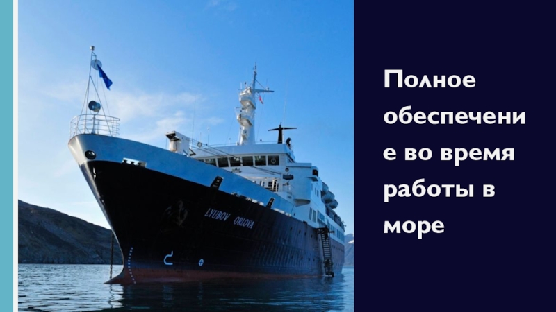 Слайд 13Полное обеспечение во время работы в море