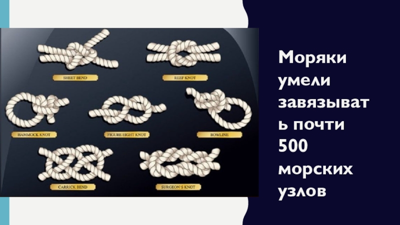 Слайд 23Моряки умели завязывать почти 500 морских узлов
