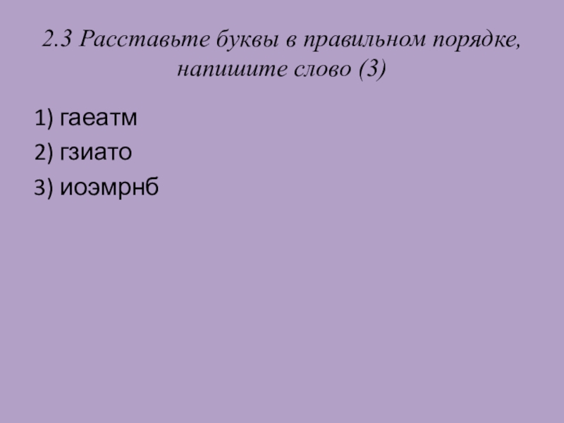 Слайд 132.3 Расставьте буквы в правильном порядке, напишите слово (3)