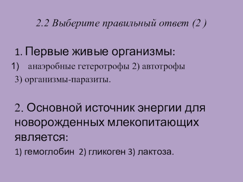 Слайд 122.2 Выберите правильный ответ (2 )