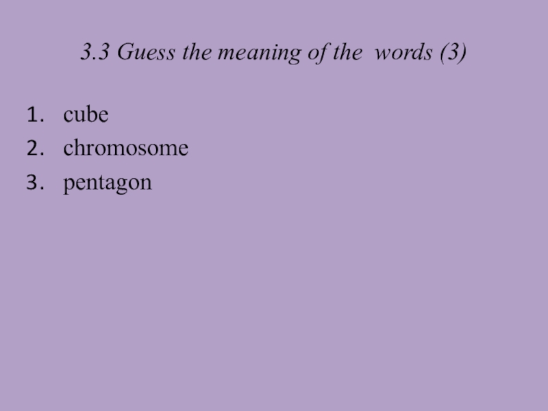 3.3 cube – куб, chromosome– хромосома, pentagon – пятиугольник