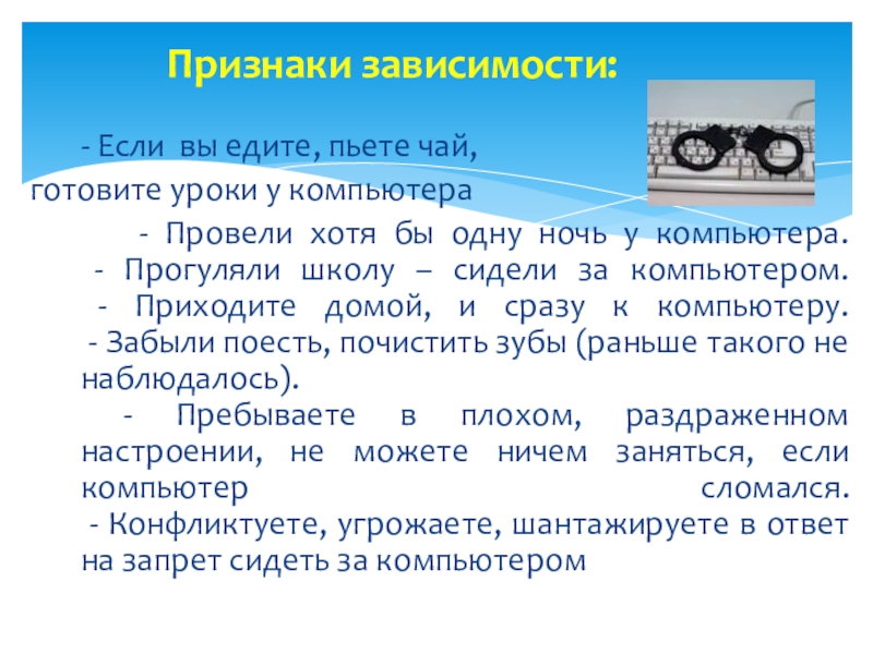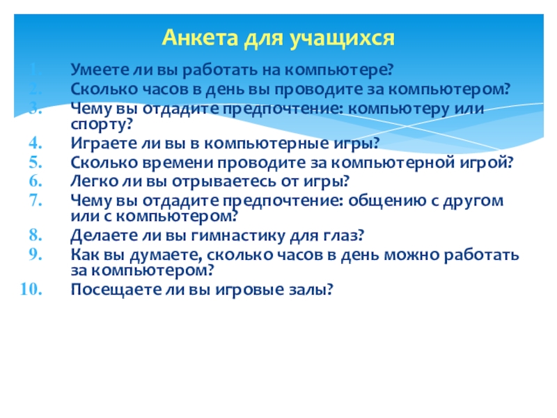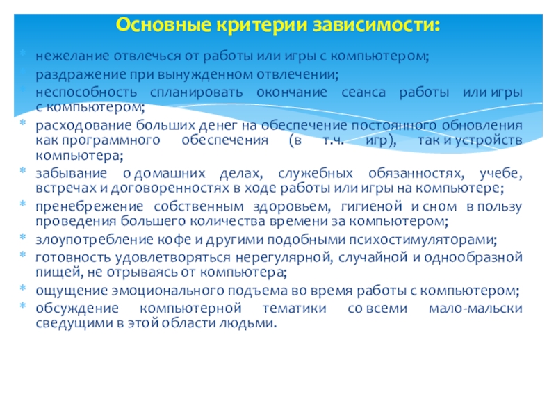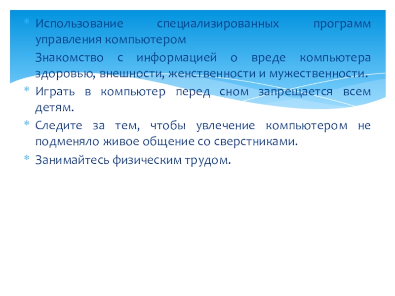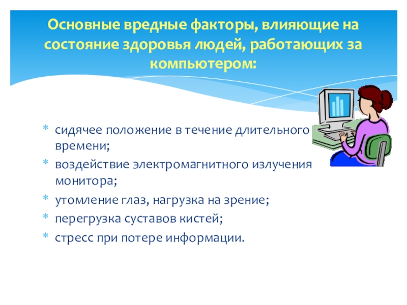 Основные вредные факторы, влияющие на состояние здоровья людей, работающих за компьютером: