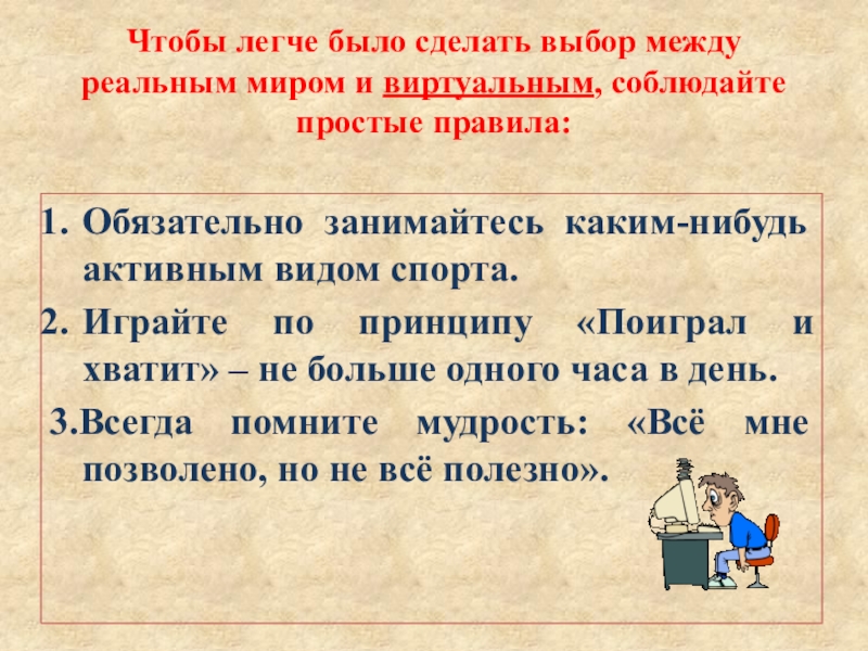 3.Всегда помните мудрость: «Всё мне позволено, но не всё полезно».
